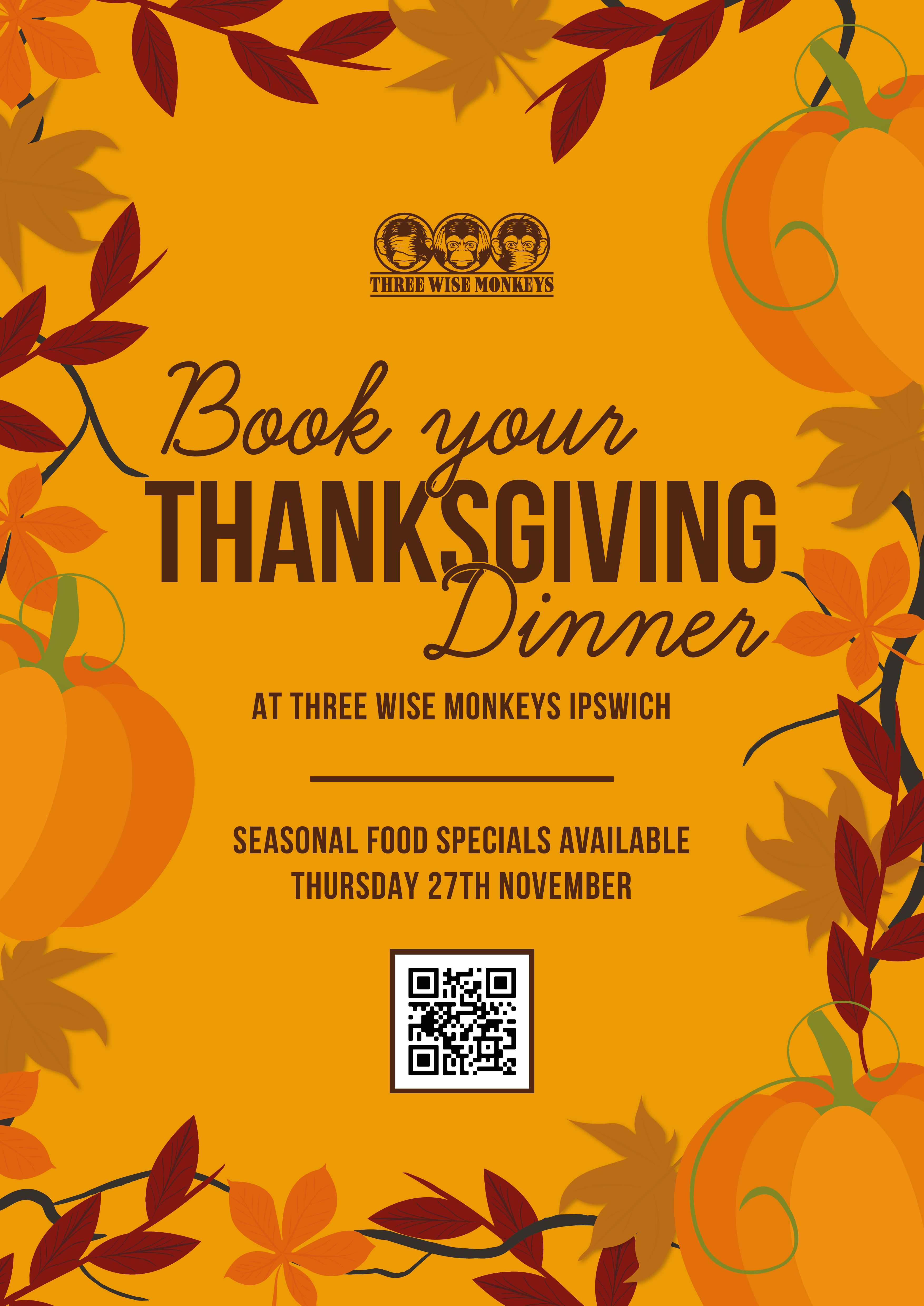 Join us for a Thanksgiving feast at Three Wise Monkeys Ipswich! Enjoy guest lines of American styled beer alongside our selection of seasonal food specials