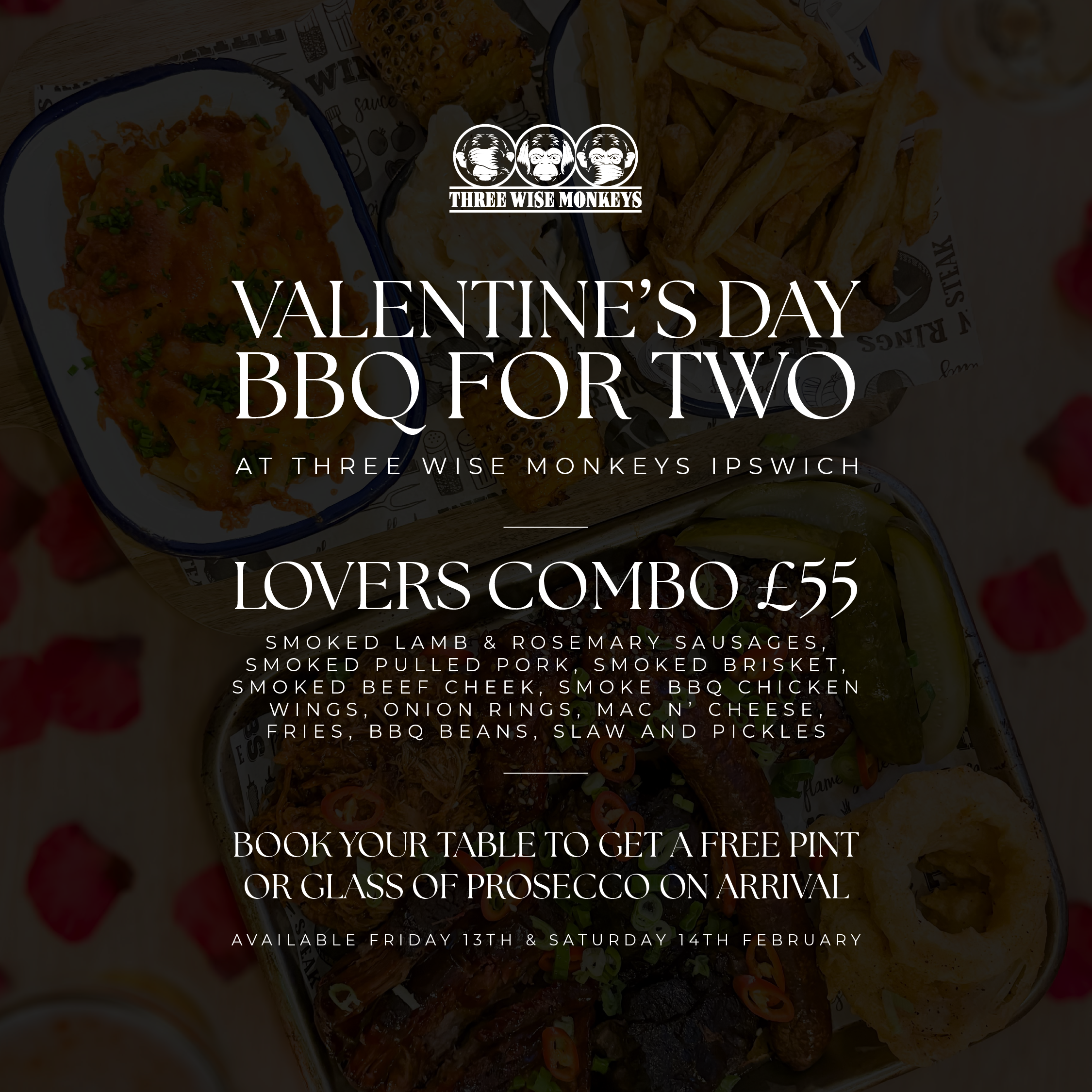 No set menus, no fuss – just proper smoked BBQ to share. A loaded platter of our favourite meats and sides including (smoked lamb & rosemary sausages, smoked pulled pork, smoked brisket, smoked beef cheek, smoke BBQ chicken wings, onion rings, mac n’ cheese, fries, BBQ beans, slaw and pickles), plus a free Other Monkey Brewing Pint or a glass of Prosecco when you book ahead.